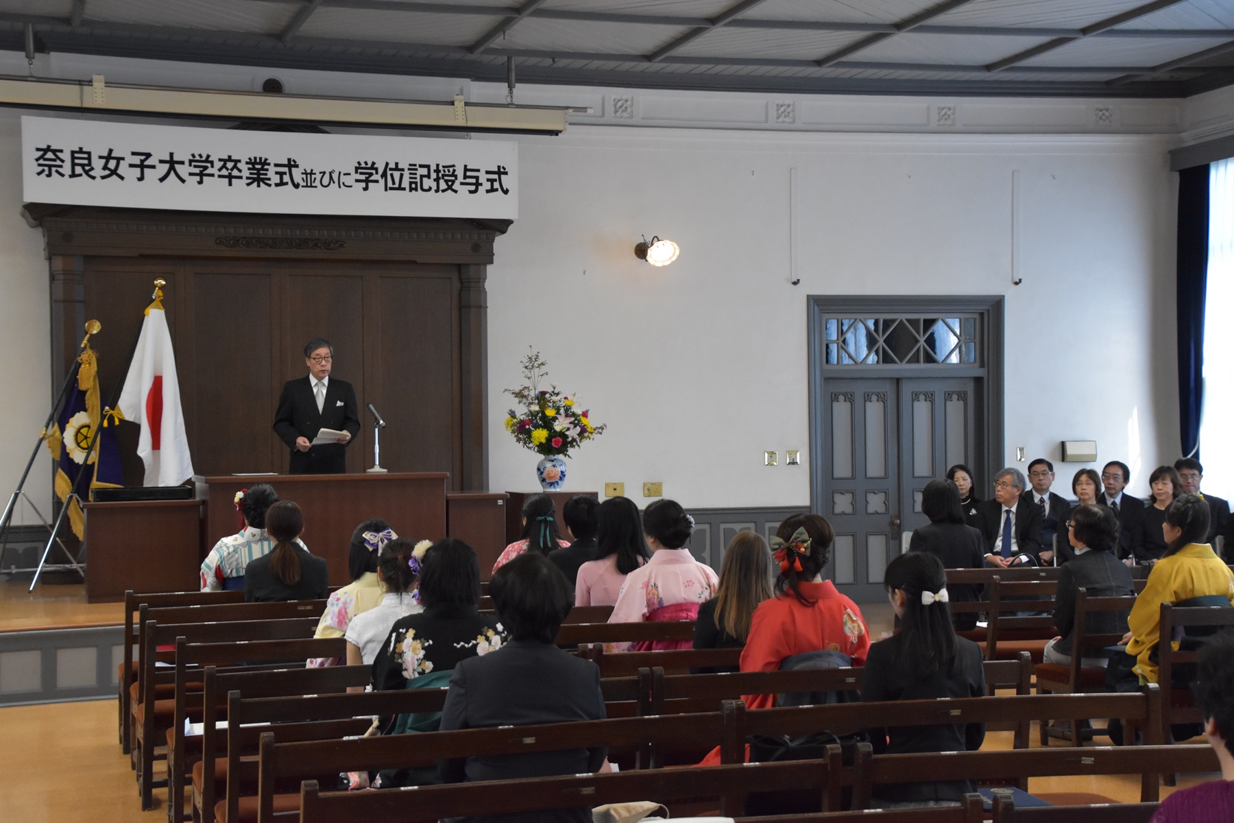 最後になりますが、私たち教職員は皆さんの成長と活躍が大きな喜びです。この奈良の地で学んだことを、全国に、あるいは母国に持ち帰って伝えてください。皆さんの前にある社会人生活あるいはさらなる学生生活が実り多いことを祈念してお祝いの言葉とします。
